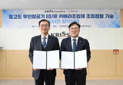 [ KRISS소식 ] KRISS-(주)한화시스템 대형기술이전 협약식 개최2 월 28 일 행정동에서는 KRISS 와 ( 주 ) 한화시스템 간 “ 중고도 무인항공기 EO/IR 카메라 조립체 조립 정렬 기술 ” 기술이전 협약식이 개최되었다 . 본 협약식에는 KRISS 의 이호성 원장과 ㈜ 한화시스템 김정호 항공우주사업부문 대표 , 기술이전 책임자인 이혁교 책..작성일자 2024-03-05 조회수 2012