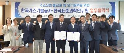 [ KRISS소식 ] KRISS-한국가스기술공사 수소산업관련 MOU 체결지난 5 월 24 일 KRISS 와 한국가스기술공사는 한국가스기술공사 본사에서 ‘ 수소산업 활성화와 연구협력 ’ 을 위한 업무협약을 체결하였다 . 이번 업무협약은 수소산업 표준관련 공동 연구 기획 및 연구개발을 비롯하여 수소 품질분석 , 수소유량계 시험설비 공동활용과 기술협력..작성일자 2023-05-31 조회수 931