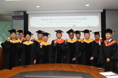 [ KRISS소식 ] UST-KRISS 스쿨 학위수여식 및 학술제 개최지난 8 월 12 일 ( 금 ), UST-KRISS 스쿨 학위수여식 및 학술제가 행정동 대회의실 및 세종홀에서 개최됐다 . 행정동 대회의실에서 열린 학위수여식에는 박현민 원장 , 이태걸 부원장 , 대표교수 및 교원 , 학생회 등이 참석하여 자리를 빛냈다 . 졸업대상자는 석사학위 1 명 , ..작성일자 2022-08-24 조회수 2395