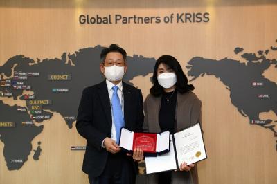 [ KRISS소식 ] 11월 및 12월 이달의 KRISS인상- 나노바이오센서팀 유은아 , 광영상측정표준팀 강필성 안희경 ( 연구부문 ), - 기술이전그룹 김의형 하지훈 ( 지원부문 ) 1 월 12 일 ( 수 ), 연구원 발전에 공헌한 우수 직원에게 수여하는 ‘ 이달의 KRISS 인상 ’ 수상자에 대한 시상이..작성일자 2022-01-19 조회수 3424