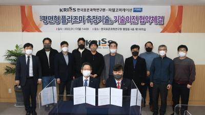 [ KRISS소식 ] KRISS-(주)파월코퍼레이션 기술이전 협약식 개최- 평판형 플라즈마 측정 기술 - ▲ 기술이전 협약을 체결한 KRISS 박현민 원장 ( 좌 ) 과 ㈜ 파월코퍼레이션의 강창수 대표 ( 우 ) 1 월 17 일 ( 월 ), KRISS-( 주 ) 파월코퍼레이션 간의 기술이전 협약식이 행정동에서 개최됐다 . 이번..작성일자 2022-01-21 조회수 3410