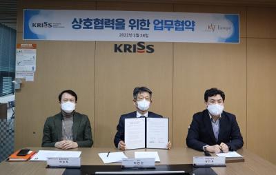 [ KRISS소식 ] KRISS-KIST 유럽연구소 업무협약(MOU) 체결- 유럽 거점 구축을 통한 국제공동연구 확대 - ▲ 온라인 MOU 를 체결한 KRISS 박현민 원장 ( 우 ) 과 KIST 유럽연구소 김수현 소장 ( 좌 ) 2 월 28 일 ( 월 ), KRISS 와 KIST 유럽연구소 ( 독일 ) 간의 상호협력을 위한 업무협약식이 ..작성일자 2022-02-28 조회수 2659