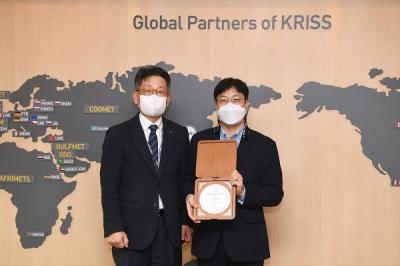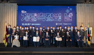 [ KRISS소식 ] 2021 계량측정의 날 포상- 강주식 책임연구원 , 오연균 이정태 책임연구기술원 수상 - ▲ 2021 계량측정의 날 행사가 10 월 26 일 ( 화 ), 서울 양재 엘타워에서 열렸다 . 지난 10 월 26 일 ( 화 ), 서울 양재 엘타워에서 ‘2021 계량측정의 날..작성일자 2021-11-10 조회수 3113