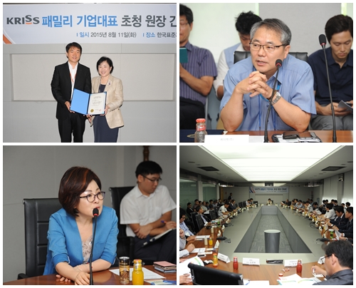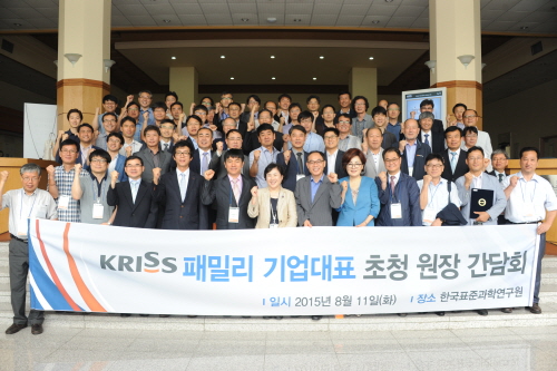 KRISS는 8월 11일(화) 행정동 2층 대회의실에서 패밀리기업 대표를 초청하여 간담회를 가졌다. 패밀리기업 제도는 KRISS가 R&D 파트너 17개 기업, 홈닥터 47개 기업을 선정하여 중소기업의 기술문제 해결을 지원하는 제도이다. 이번에 개최된 간담회는 패밀리기업과 협력강화를 위해 기업대표를 초청하여 애로사항 및 건의사항을 청취하고 기술지원을 활성화시키기 위해 마련됐다. 간담회에 참가한 38개 기업의 대표들은 패밀리기업 지정서 수여식을 가졌다.