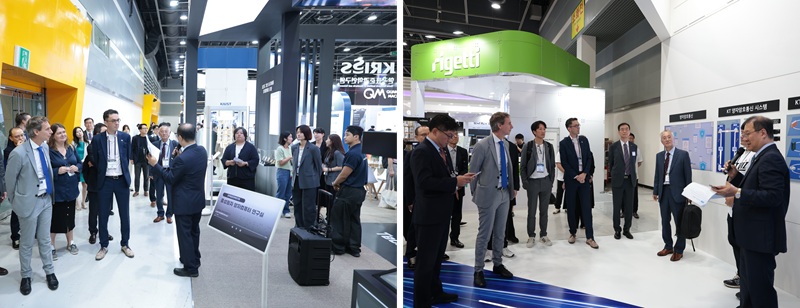 행사 2일차인 6월 25일에는 ‘퀀텀 네트워킹 리셉션’과 ‘한국-덴마크-스위스-네덜란드 4개국 공동 세미나’가 개최됐다. 네트워킹 리셉션에 앞서 국내외 주요 인사들을 대상으로 전시 투어가 진행되었으며, 참가자들은 KRISS 부스를 포함한 주요 전시 부스를 방문해 양자컴퓨터, 센서, 통신 등 핵심 기술에 대한 설명을 듣고, 한국의 양자기술 개발 현황과 경쟁력을 직접 확인하는 시간을 가졌다.