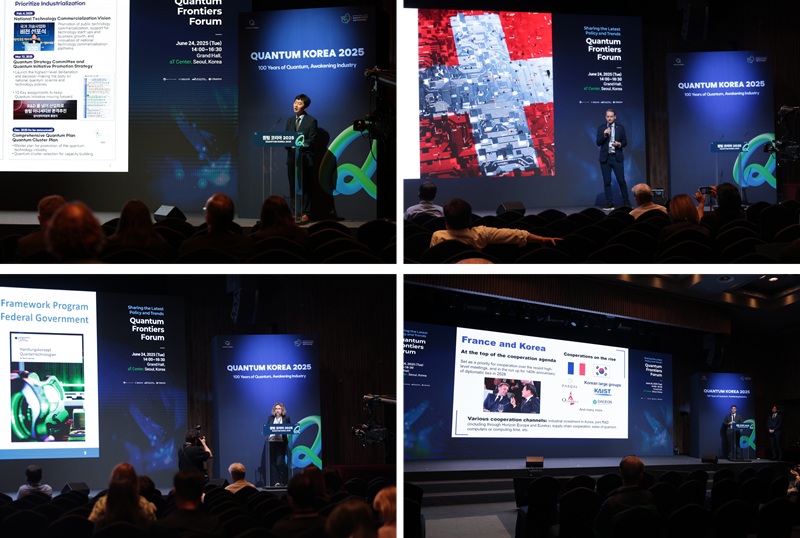퀀텀코리아 2025 개막식 직후, 그랜드홀에서 ‘퀀텀 프론티어 포럼’이 열렸다. 본 포럼은 각국의 양자과학기술 전략과 정책을 발표하고 공유하는 자리로, 과기부 심주섭 양자혁신기술과장을 비롯해 한국, 캐나다, 덴마크, EU, 핀란드, 독일, 네덜란드, 스웨덴, 스위스, 영국, 미국, 프랑스 등 12개국을 대표하는 주요 인사들이 참석해 발표를 진행했다.