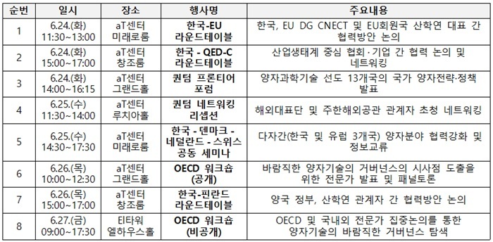 ▲ 퀀텀코리아 2025 기간 중 국제협력 행사 개요