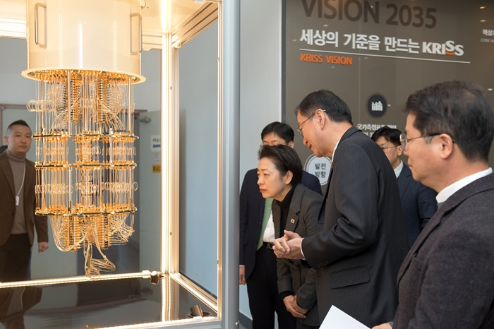 ▲ KRISS가 개발한 초전도 양자컴퓨터에 대한 설명을 듣고 있는 황정아 의원