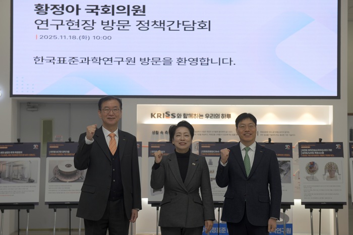 지난 11월 18일(화), 국가과학기술연구회가 주관한 ‘출연(연) 정책간담회’가 KRISS에서 개최되었다. 해당 정책간담회는 대덕연구개발특구 소재 정부출연연구기관을 대상으로, 황정아 국회의원이 연구 현장을 직접 방문해 애로사항을 청취하고 연구자 중심의 정책을 마련하기 위하여 추진되었다.