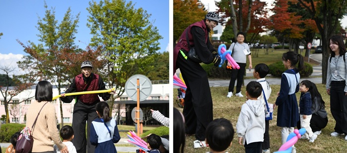 ▲가족사진 촬영 순서를 기다리는 동안 아이들을 즐겁게 해 준 피에로
