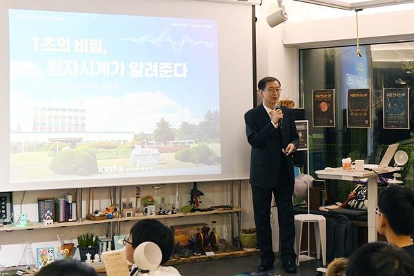 ▲ 과학 강연을 진행하고 있는 KRISS 이호성 원장