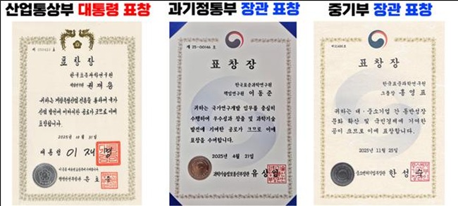 이러한 우수한 성과에 힘입어 권재용 책임연구원은 대통령표창을, 이동준 책임연구원은 과학기술정보통신부장관표창을, 홍영표 책임연구원은 중소벤처기업부장관표창을 나란히 수상하며 KRISS 연구진의 저력을 유감없이 발휘하였다.