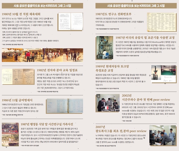 ▲ (위) ‘연구소 뉴스’ 전시구역 (아래) 전시 코너 中 ‘사료 공모전 출품작으로 보는 KRISS의 그때 그 시절’