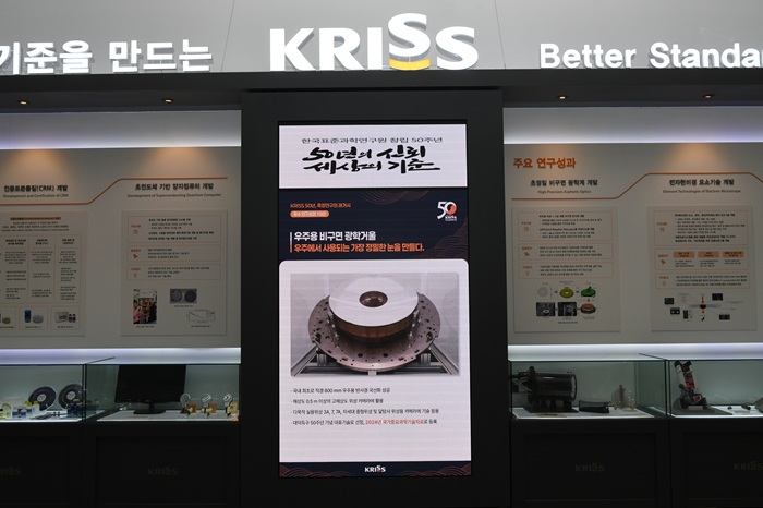 홀 중앙에 위치한 소형 디스플레이는 기존의 무지개 예술작품을 대신해 ‘KRISS 대표 연구성과 10선’의 내용이 전시된다. 그 위에는 대한민국 표준시(UTCk 4.1 버전) 프로그램을 새롭게 만들어 실시간으로 보여주는 창으로 구성될 예정이다. 이는 대한민국 표준시를 비롯한 KRISS 대표 연구성과들을 직관적으로 보여주는 공간이다.