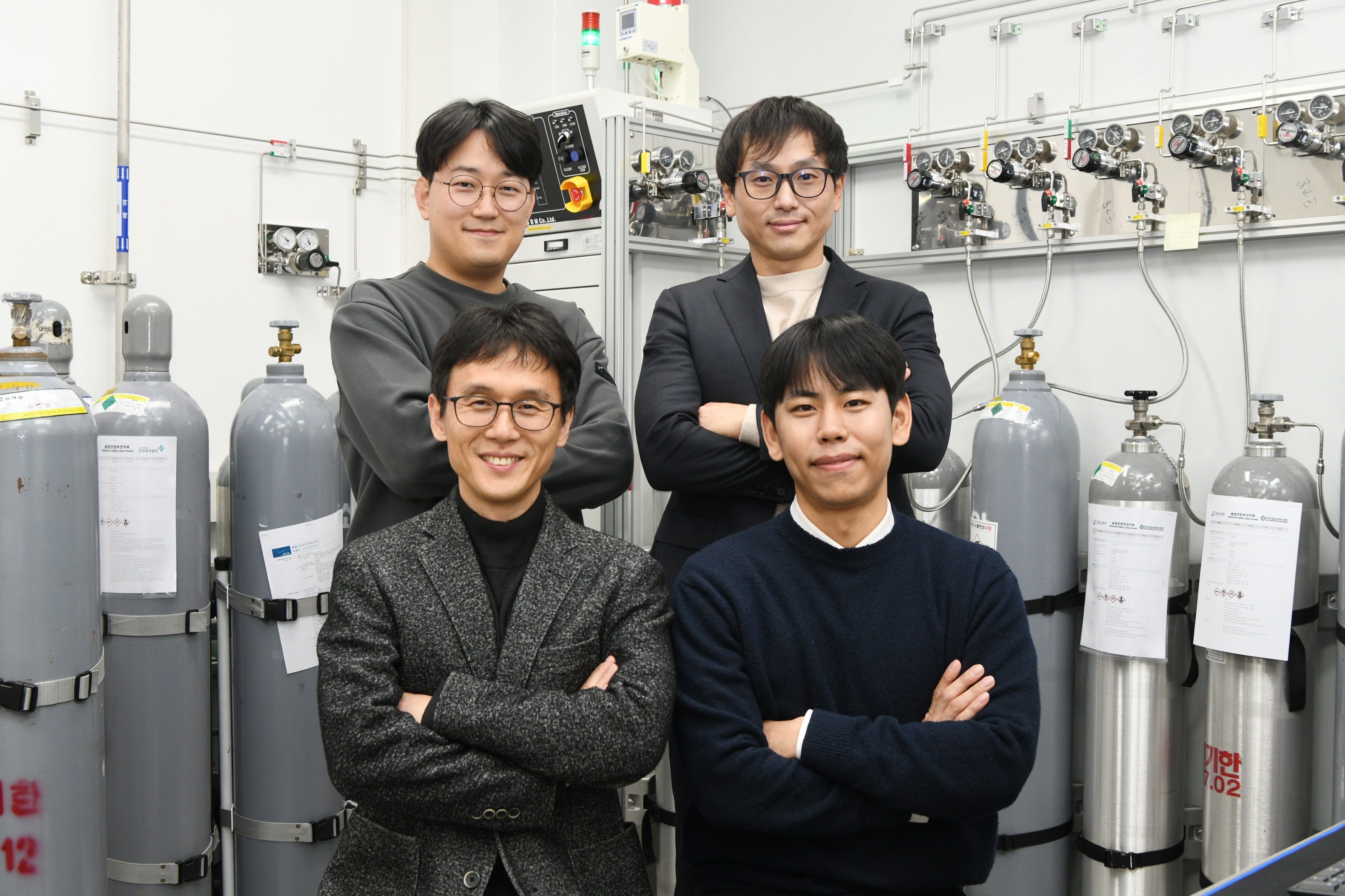 (앞줄 좌측부터 시계방향으로 KRISS 권지환 첨단소재측정그룹장, 전종철 기술원, 권기창 책임연구원, 서울대학교 남기백 박사과정생)