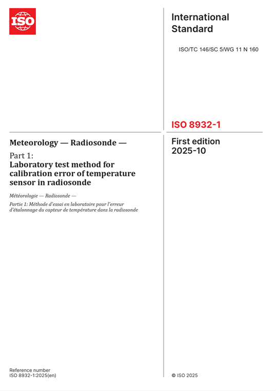 ▲ 신규 국제표준안 ISO 8932-1(라디오존데 온도 센서 교정 시험법)의 표지