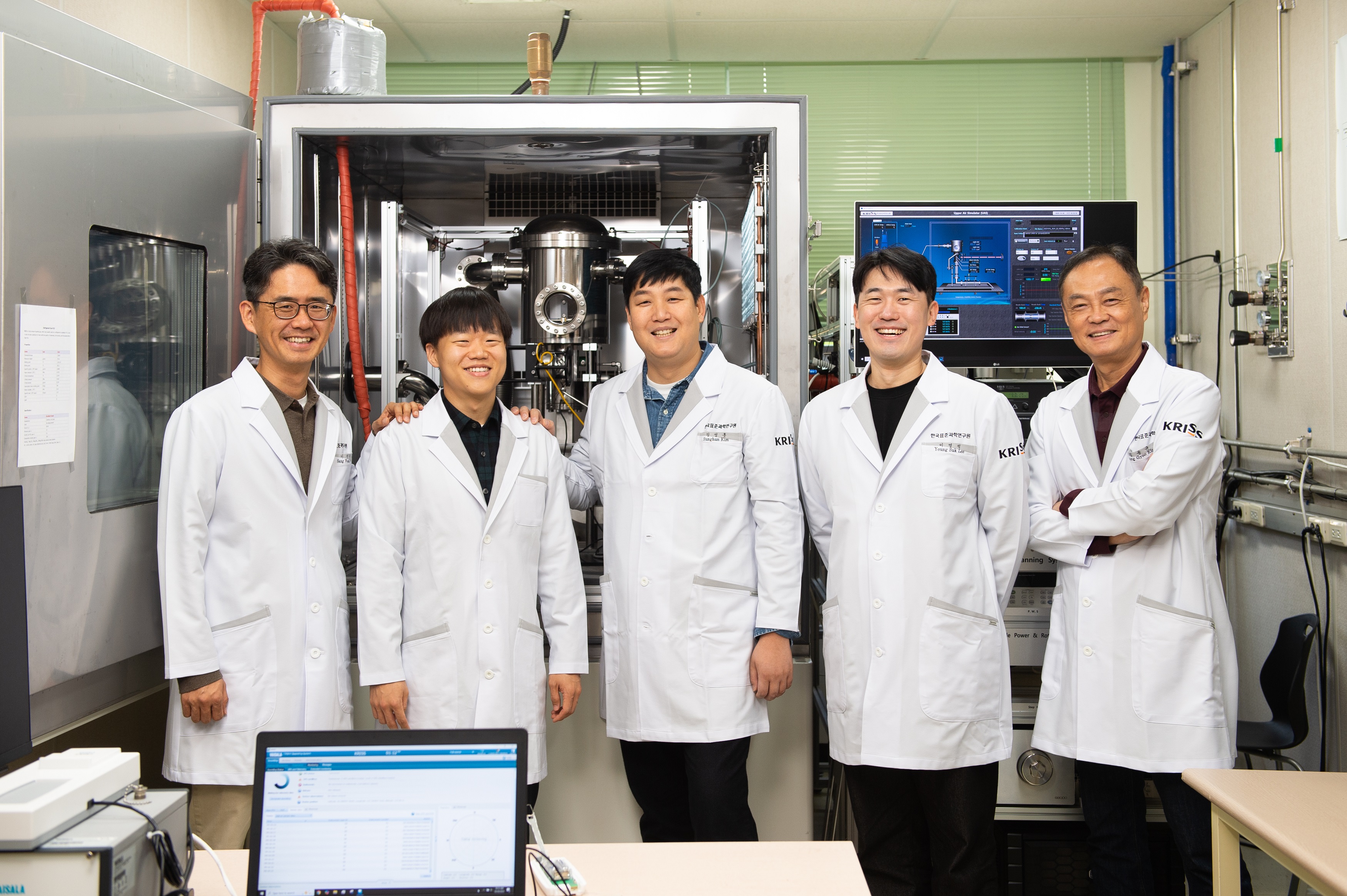 (앞줄 좌측부터 KRISS 이상욱 책임연구원, 김선웅 선임연구원, 김성훈 선임기술원, 이영석 선임기술원, 김용규 책임연구원)