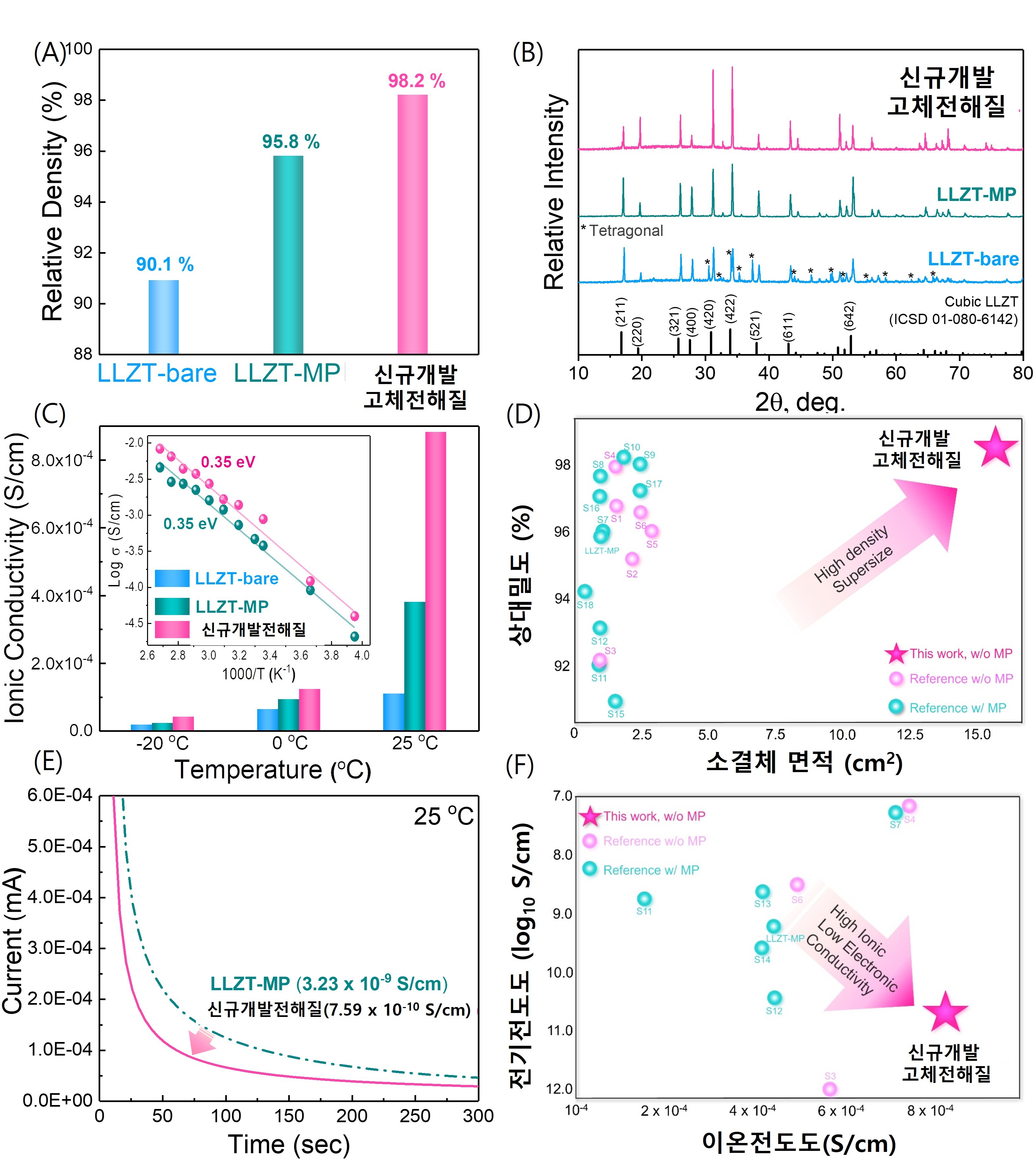 연구진은 실제 이번 기술을 적용해 고가의 모분말을 전혀 사용하지 않고도 세계 최고 수준인 98.2% 이상의 밀도를 달성했으며, 이온전도도는 기존 대비 2배 이상 향상된 화학적·기계적 결함이 없는 고강도의 고체전해질 막을 제조했다. 또한 해당 고체전해질 막의 전기전도도를 20배 이상 감소시켜 전지 내부 전류 손실 위험을 크게 낮췄으며 이를 통해 전고체전지의 효율과 안정성을 동시에 강화했다.