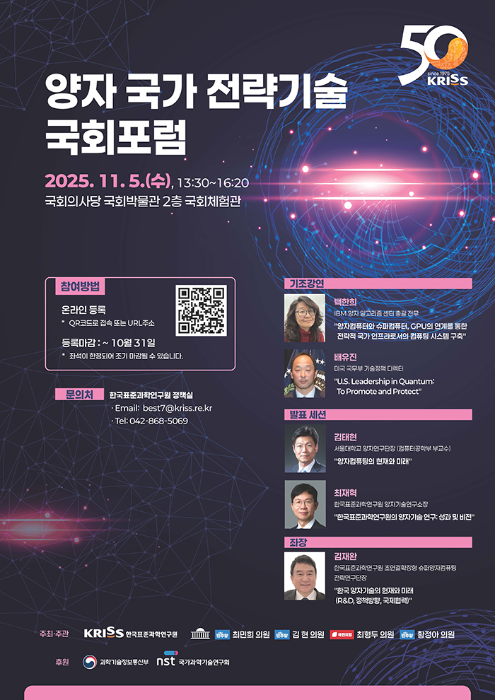 - [KRISS 소식] KRISS, 창립 50주년 기념 ‘양자 국가 전략기술 국회포럼’ 성료 바로가기
