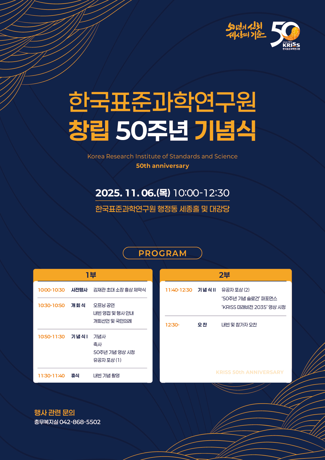 - 내용 : KRISS 창립 50주년 기념식 및 부대행사